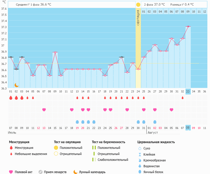 Базальная температура, ТТ, графики БТДевочки, посмотрите график. Была вчера на приеме у Г - она меня посмотрела, взяла мазок. По результатам осмотра сказала, что все в порядке. Сбой в середине цикла объяснила приемом Дюфастона и запретила его (да я и сама не стала его в этом цикле принимать).