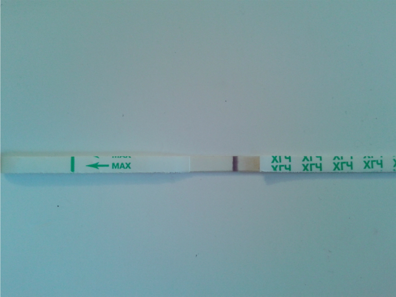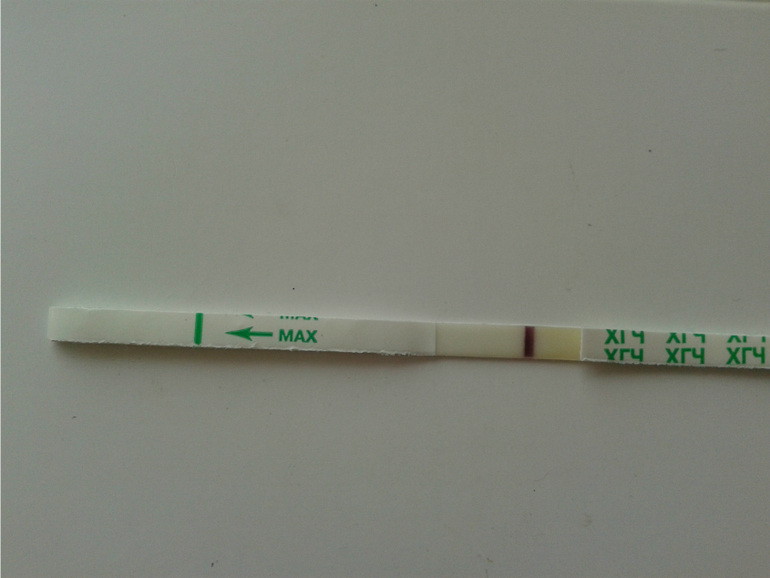 Наташка, ну ты даешь — молодчина!!! У меня так каждый раз было — сначала чуть чуть видно но с каждым днем все ярче будет — ты проверяй! Но мне кажется я вижу вторую полосочку :))