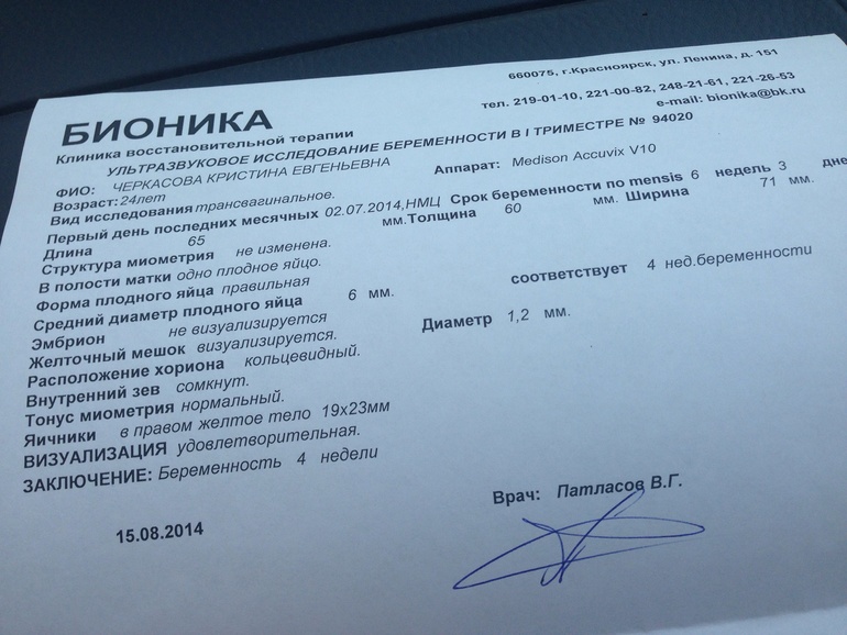 Кристина у меня последнии М были 03.07.2014. Т.е. мы рядышком. Я ходила на Узи 03.07.2014. т.е. на 4 недели Б. И ПЯ было 5,4 мм. Овуляция точно знаю была 18.07.2014. Так что лучше сходи к другому Узисту.