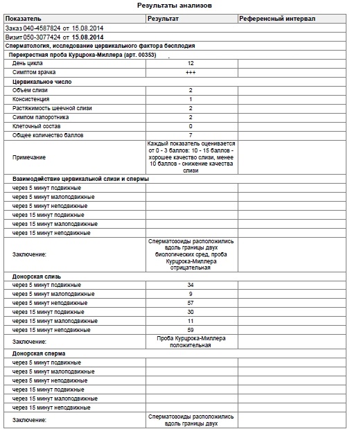 А почему нет значений во "взаимодействии церквильной слизи и спермы" и с "донорской спермой"?