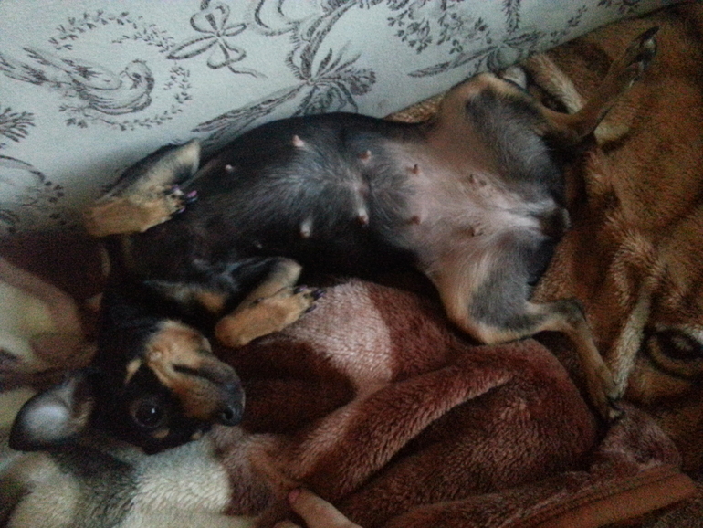 Мне кажется ваша Манюня совсем недавно с пузиком была? Или я ошибаюсь? Или она, счастливая, каз в квартал плодится?