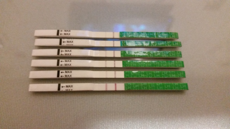 Сделала сегодня тест утром-стала полоска бледней. Сделала сейчас и вот что получилось,она снова яркая! Но ещё наверное снова не дотягивает?