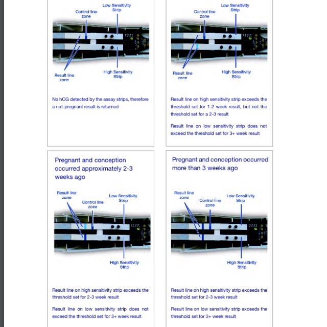 Смотри выше рисунок! На Б тесте три яркие полосочки. У меня как на нижнем было, когда тест показывал 1-2 недели
