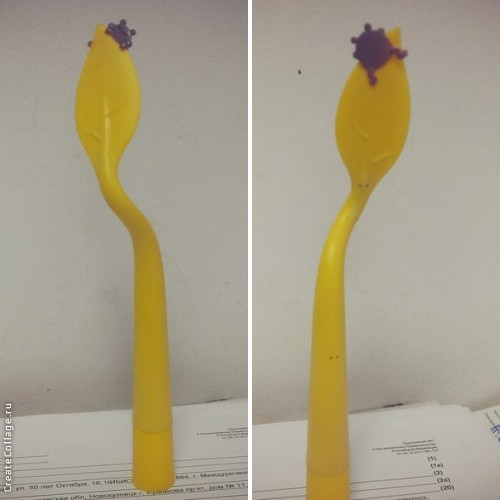 О! И чуть не забыла про талисманчик, который у меня на работе обитает! Чудо-ручка на листике у которой сидит маленький сиреневенький лягушонок!