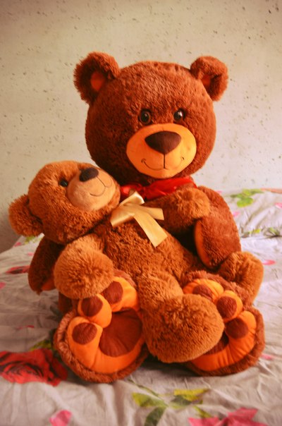 2 сентября у нас с моим мужчиной было 2 года отношений, и он подарил мне большого медведя, но самое главное это то, что года 1,5 назад на 14 февраля он уже дарил мне медвежонка поменьше (той же фирмы). Так вот: на днях я поняла, что это, не как он говорит"медведь подрос", а мама-медведица и ее дитё!)))