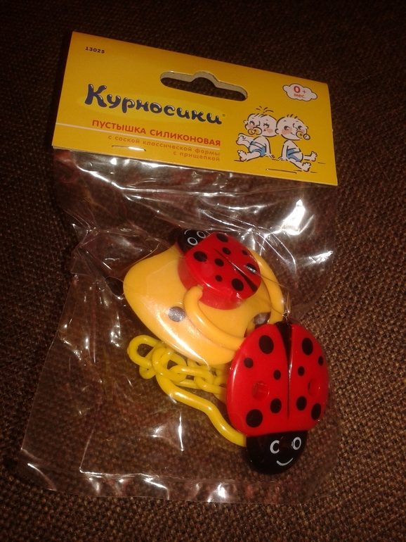 Давно соблазняюсь купить пустышку от "Курносиков". Они очень у них милые. Пусть это коровка приманит вам малыша)