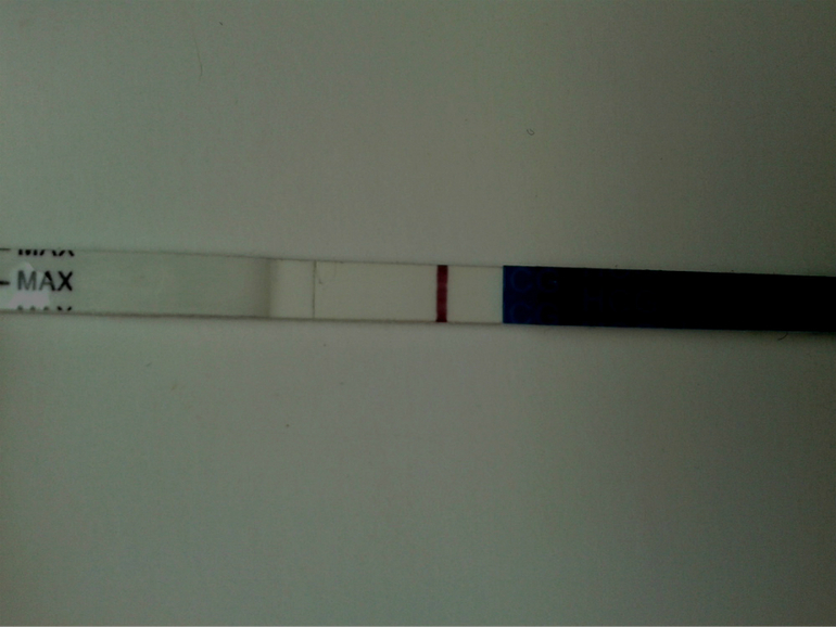 там,где должна,но она полая,белая.в ней нет реагента чтоб окрасил полоску,потому и белая.а по краям затемнения.