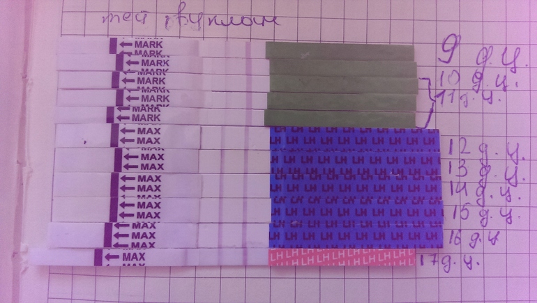 Вроде на 13 или 14 дц-выброс ЛГ был, значит через 24-36 часов будет овуля)) то есть на 15-16 дц овуля. Аскажите, какой фирмы синие тесты?)