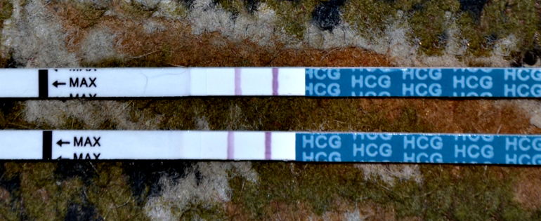 Беременность- 1 триместр ( только до 10 недель)5 день задержки,а они вот такие.Причем на 13 ДПО,на 15 и на 19- тестовая полоска одинакова на всех.
