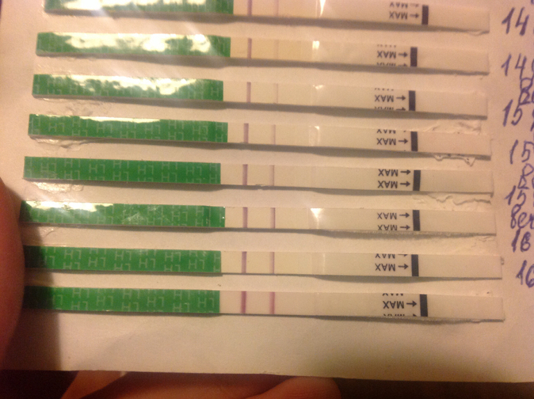 Овуляция( тесты на овуляцию)Смотрите,если вчера было так (самый нижний тест,выглядел ярче чем на фото)