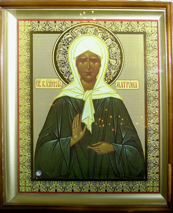 Вторая молитва: «О, блаженная мать Матрона, услышь и прими ныне нас, грешных, что молятся к тебе, навыкшая во всем житии своем принимать и выслушивать всех скорбящих и страждущих, с верой и надеждой к твоей помощи прибегающих, быстрое поможение и исцеление всем подавающи; да не оскудеет милосердие твое к нам, недостойным, мятущимся в суетном мире и нигде не обретающим сострадания и утешения в скорбях душевных и помощи в недугах телесных, исцели болезни наши, избавь от мучительства и искушения дьявола страстно воюющего, помоги донести житейский свой Крест, вся тяготы жития и не потерять в нем образа Божиего, веру православную до конца наших дней сохранить, надежду и упование на Бога крепкие иметь и нелицемерную любовь к ближним нашим, дабы помочь нам по отшествии из жития своего достигнуть Царствия Небесного со всеми, Богу угодившими, прославляющи благодать и милосердие Отца Небесного, в Троице славимого: Отца и Сына и Святого Духа во веки веков. Аминь…»