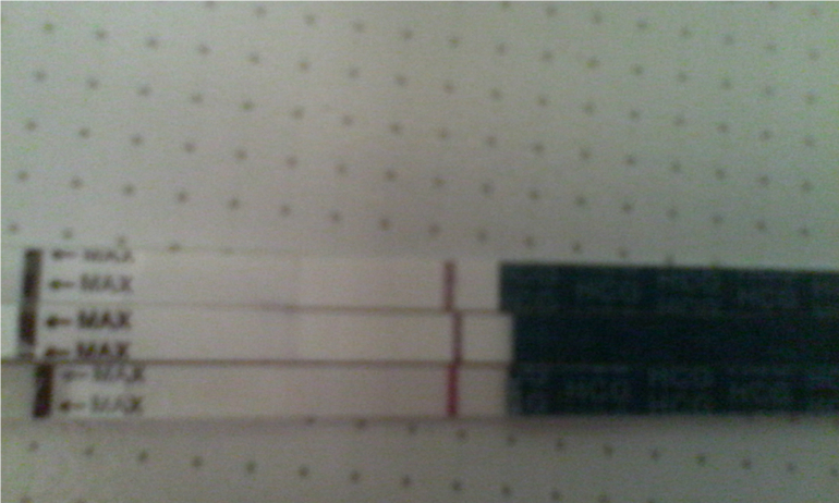В реальности намного лучше видно)Первый сверху 3 ДЗ, второй 4 ДЗ утро ,а нижний 4 ДЗ вечер. НО!!!Сегодня утром (5 ДЗ) сделала кассетный фраутест и мне ничего он не показал