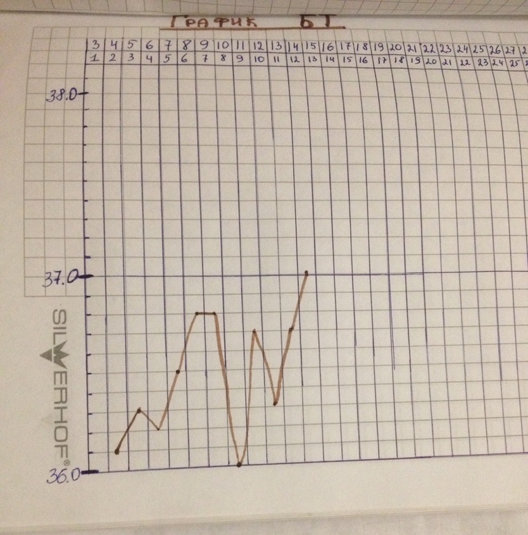 Во второй фазе тем-ра держится около 37-37.3 градусов, но это условно, на самом деле важна разница между средней тем-рой первой и второй фаз-она должна быть 0.4°С. Перед О тем-ра падает, а затем вырастает до тем-ры второй фазы (дня за 2), перед мес. падает за 1-2 дня до М.График очень удобно вести здесь на ББ: в дневнике в Приложениях.http://www.babyblog.ru/app/basalУдачи!!!