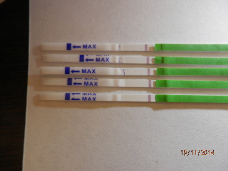 .муж малость не успел)прошло 13-14 дней после этого тесты со слабами полосками или реагентами..посмотрите поверните,затемните...Только не осуждайте Евик сделан 17 ноября,МОН АМИ 5 шт вчера в разное время и сегодняшнии..Спасибо.