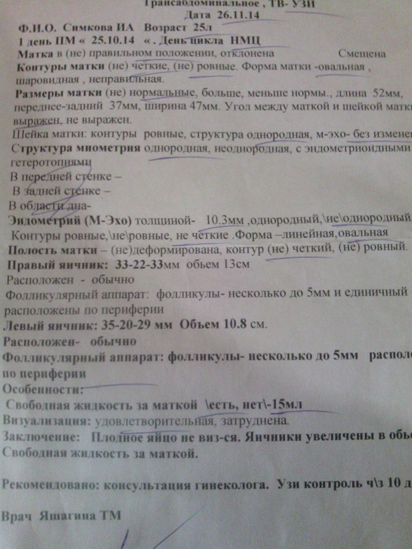 Как нет? Есть в правом яичнике написано: "... фолликулы: несколько до 5мм и ЕДИНИЧНЫЙ" а дальше просто в кадр не попало, но наверняка про ДФ 20-22мм, так жёлтое тело могли описать по недоверию к тестам на беременность.