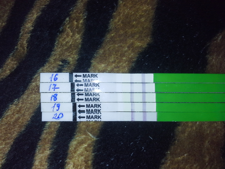 Овуляция( тесты на овуляцию)Девочки, всем добрый вечер! И это снова я со своей О. Я вчера выставляла свои тестики и все мне говорили, в том числе и я так думала, что О на 18 д. ц.http://m.babyblog.ru/community/post/conception/3081783#comm_156984231 , но вот теперь сомневаюсь. Вот мой сегодняшний тестики (самый нижний)