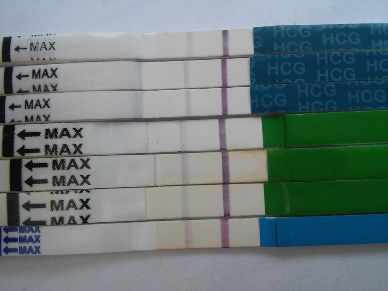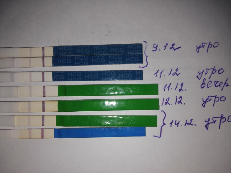 Ждем дня Х (Признаки беременности / Тесты)Девочки, здравствуйте. Подскажите, может кто что понимает. А то я уже ничего не пойму, что со мной. В этом цикле я писала пост о сдачи гормонов. Были повышены ЛГ, пролактин и тестостерон. Врач мне назначил достинекс и метформин. После М ходила на магнитотерапию 7 дней. На 20 д.ц. сдавала прогестерон - он был ближе к нижней границе нормы. БТ в этом цикле не мерила. Старалась отвлечься. Потом заметила, что примерно с 21 д.ц ТТ 37-37,2. Она и по сей день такая. С 1 декабря (23 д.ц) решила опять мерить БТ, она держится на уровне 37-37,3. 10 декабря надо было пить 1/2 таблетку достинекса, а т.к они у меня закончились, и надо было покупать, я решила сделать тест на беременность (один дома лежал еще с весны). И на нем сразу появилась вторая полоска, не такая яркая, но все же есть. Потом я еще делала, разные, но полоска не ярчает. Верхние 3 эви, зеленые - я родился, нижний - битест. Вот и не знаю, что со мной.