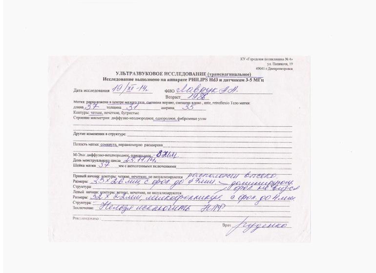 Я записалась на прием, в женскую консультацию в другом конце города:) Врач мне очень понравилась, отправила сразу на узи, для меня было шоком когда я увидела современный аппарат узи, а не тот, что я ходила на фолликулометрию, хорошее отношение не за большие деньги. Врач сделала мне кольпоскопию, взяла мазок, отправила на узи надпочечников и молочных желез, а я все думала почему с моими гормонами никто не отправляет меня на узи надпочечников. в общем от врача я в восторге, вышла с улыбкой и настроем идти дальше к свое цели. На 7 день цикла пойду на узи на 21 сдам гормоны. Сказала продолжать пить циклодинон и колоть овариум композитум, ну и после анализов к ней.