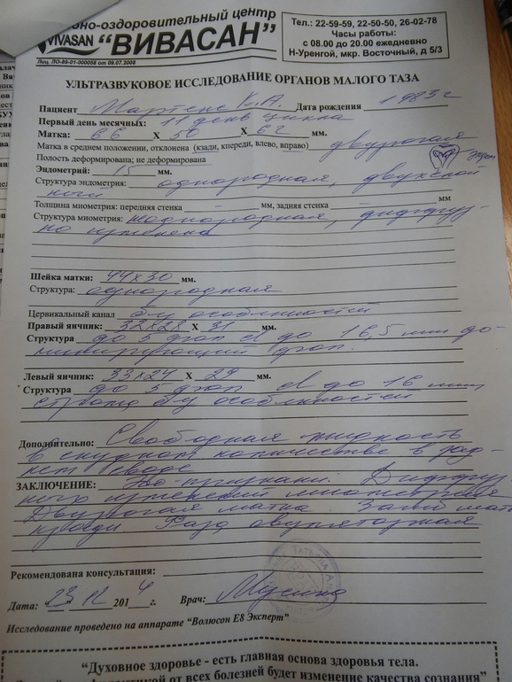 Ну вот я опять с вами. Снова планируем, тьфу-тьфу. Анализы в норме, пью дюфастон с 11 дц и фолиевую. Т.к. у меня двурогая матка, не могли поймать о., побежала на УЗИ на 11 дц...и о Боже...я овулирую...и у меня ДВЕ яйцеклетки по 16 и 16, 5 мм. па был на 8 и 11 дц....Эндометрий 15 мм, одна в процессе и вторая с овулирует вот-вот...бегу за гелем (для флоры)...сегодня чувствую с овулировала уже вторая яйцеклетка.... Начиталась в инете про Дюфастон, что рано пить его начала, может овуляция заглохнуть. Теперь одни вопросы в голове...когда сдавать на хгч? Почему такой большой эндометрий, на 11 дц..... когда имплантирует эмбрион.....и много, много еще чего. У меня мозг взрывается...