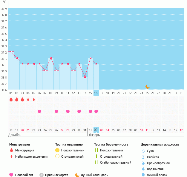 Базальная температура, ТТ, графики БТСегодня уже 16 ДЦ, а по графику БТ О нет. А я наивная так надеялась, чо О будет 31 декабря. Получается или О буде поздняя, либо опять пролет