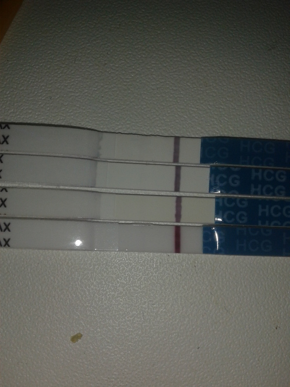 Когда у меня были такие полоски-оказалось реагенты,даже ярче были и розовые,а потом пропадали и М начинались(Но пусть у вас это будет зарождающаяся Б !