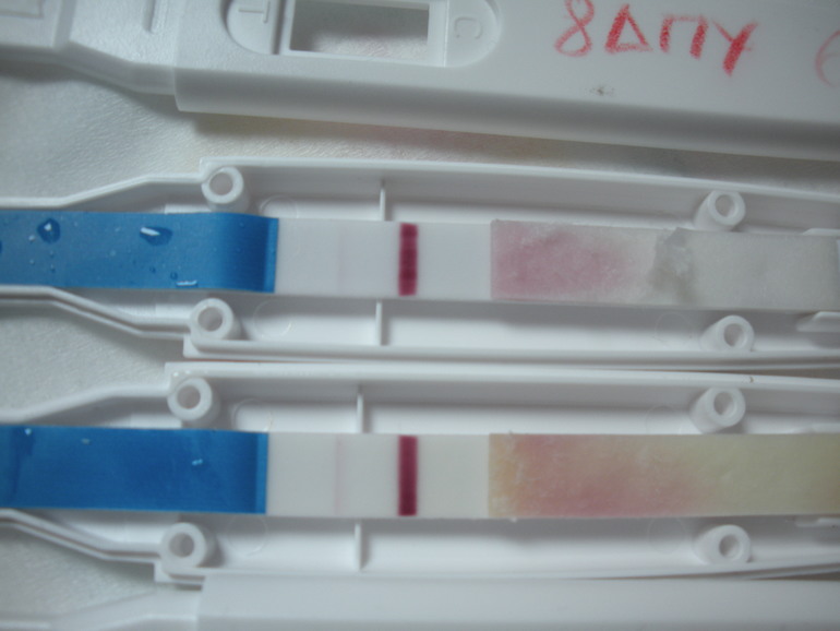 Ждем дня Х (Признаки беременности / Тесты)продолжаю делать тесты после пренил 5000.вроде бледнеет.интересно а при Б полоска должна пропать,а потом снова появится или сразу бледнеет,а потом начинает ярчать.кто в курсе.укол был 29-го,но была ещё О 28-го.