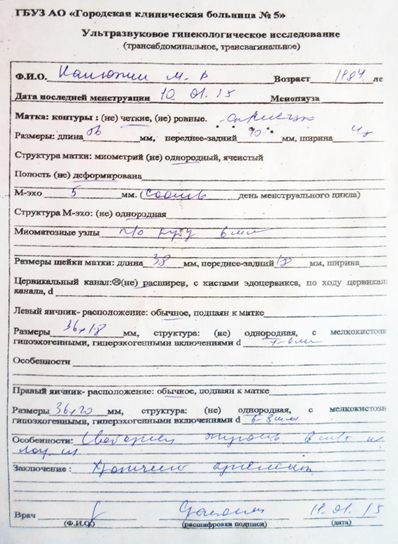 Ну вот( лучше бы не расшифровывала ваш диагноз. Надеюсь, что мои глаза меня обманули и я потеряла способность расшифровки подчерка.