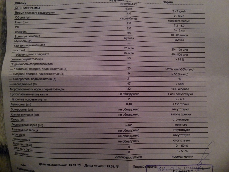 9-ый цикл идет. Я все-таки списываю на настроение. Почитала в инете, что у мужчин качество спермы, также, как у женщин гормоны, зависит от настроения, стрессов и т.д. Недавно моего мужа повысили в должности и он стал управляющим и это сильно сказалось на его нервной системе))) Мало спит, плохо ест, психует много... Так что не удивляюсь, что результат не очень. Я так поняла, что главное — это морфология, а она вроде хорошая... В субботу делапю мрт малого таза, потом к врачу. Послушаем, что скажет.