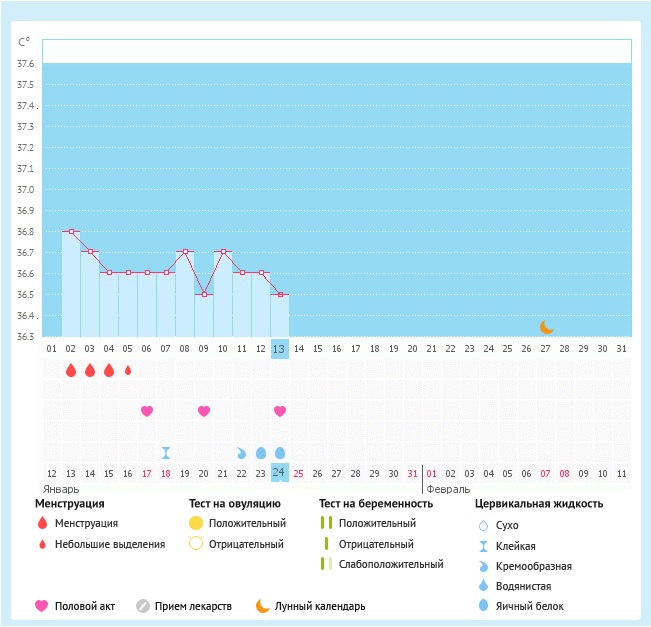 Овуляция( тесты на овуляцию)Дорогие девочки! Хочу с Вами проконсультироваться))) Итак, дано: средняя длина МЦ 28 дней (в прошлом цикле было 30 дней), начало последнего цикла 12 января (т.е. сегодня только 13-й день МЦ), О ожидала в районе 14-15 ДЦ и отслеживала микроскопом и измерением БТ. Сегодня же пошла на фолликулометрию результат коей меня обескуражил и я теперь вообще ничего не понимаю... Результаты УЗИ и график БТ