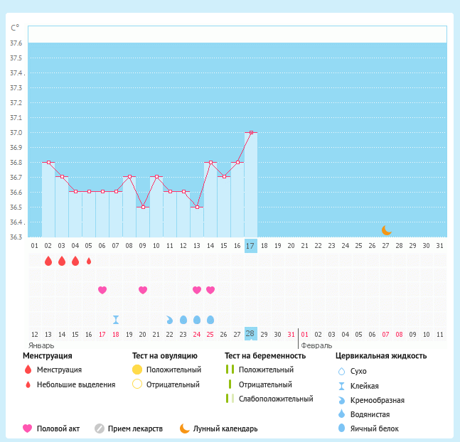 Как видите, БТ только сегодня доползла до 37. Предполагаю, что О все-таки случилась на 13 ДЦ до моего похода на первое УЗИ (в 16:00). Сравнив результаты УЗИ на 13-й и 17-й ДЦ, увидела, что эндометрий с 12 мм уменьшился до 9,6 мм, а ЖТ выросло с 11 до 16. Почему-то сегодня узист удивился, что на 13-й ДЦ ЖТ было 11 мм, но не объяснил почему это его так удивило.. Странно.. По поводу БТ, предположил, что термометр неисправен, но я так не думаю, т.к. покупала новый специально для этих дел. Спросила должна ли БТ повышаться сразу после О, или она может расти в течение нескольких дней после. Ответил, что должна повыситься сразу и не на 0,3 (как у меня), а на 0,4 и выше, но... несмотря на все эти непонятности, О все-таки была)))) А еще я возмущена вот чем! Вопросы, типа "Где Ваше направление?" и "Кто ваш гинеколог?" меня напрягают, если честно. Неужели человек за свои деньги не может без направления прийти? А гинеколог-то тут причем вообще? Если меня ничто не беспокоит, зачем мне к нему? Я понимаю, когда проблемы, но когда все в порядке, то зачем? Чтобы лишний раз деньги отнести да нервы помотать? Я рассуждаю так: если получится заБ, то так и так придется становиться на учет в ЖК и идти к Г, и если не будет получаться больше чем полгода (не дай Бог, конечно), то тоже))) Но пока этого не случилось и я хочу попробовать сама, без излишнего вмешательства. Ну как-то же беременели наши мамы и бабушки и без предварительных посещений Г...