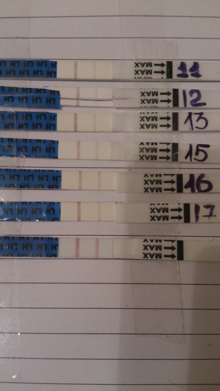Овуляция( тесты на овуляцию)Девочки,последний тест замочен 10 мин назад,еще не высохшиЙ.сегодня БТ низкая для меня-36.4...это она??