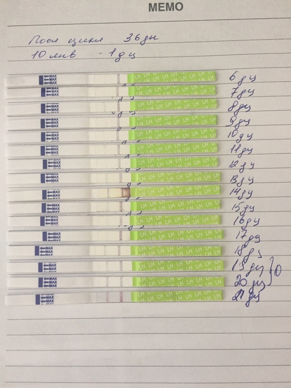 Очень непонятно с этими тестами — у меня О была в тот же день, когда тест начинал полосатиться и яркие полоски ещё были день-два после. И так каждый цикл.