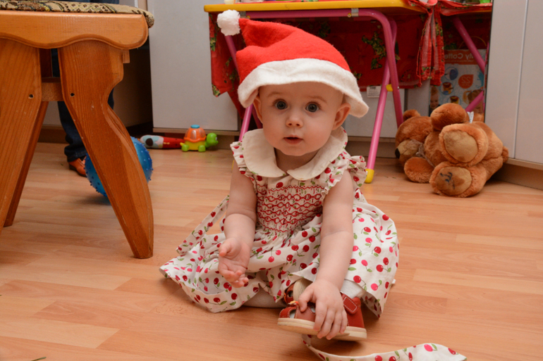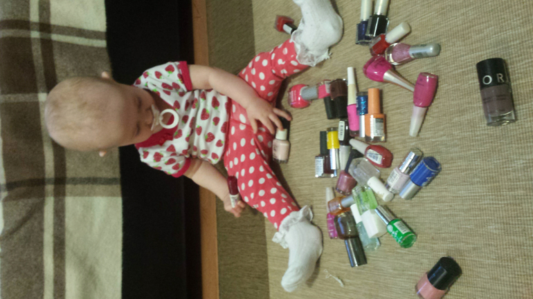 Ну и немного похвастаюсь моей принцессой. через 3 дня нам 10 месяцев. Мы умеем стоять, но пока ходим только за ручку. Одну. Есть 3 зуба и 4й лезет. Кушаем нормально. Вести 7950 и рост 79))) активная Иринка. Делится со всеми. Повторяет многое. Говорит мама, пап, ба, мое... знает четко "нельзя" (касается проводов и комода в частности). Днем спит 2-3 раза по 40 минут. Ну и проблема... мы Кушаем ночью. Никак не можем отучить... вода и соска не помогают. Вынь до полож надо поесть. Хотя перед сном съедаем кашу или творог, папу раз давали даже мяско. Почти всегда Кушаем со сливками.... странная у дочки особенность ночного питания.