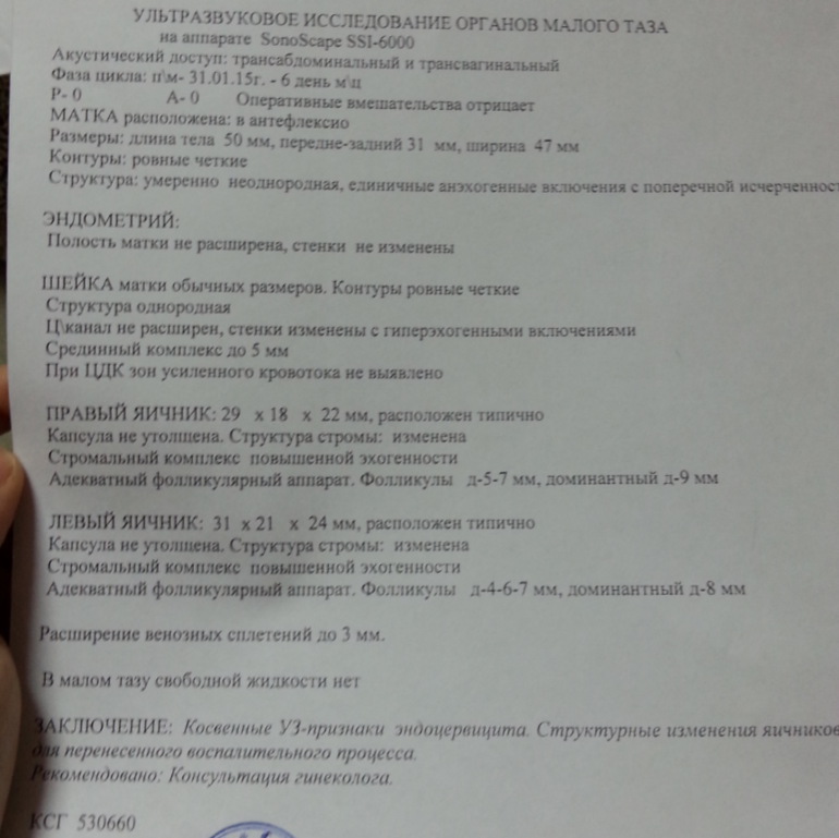 До этого (летом) был по-моему аднексит. Не знаю потдвердился или нет. Она мне просто сказала, у тебя восполение. Иди беременней, потом все пройдет.