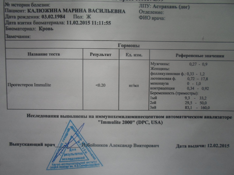 ОЧЕНЬ, ОЧЕНЬ низкий ПРОГЕСТЕРОН
