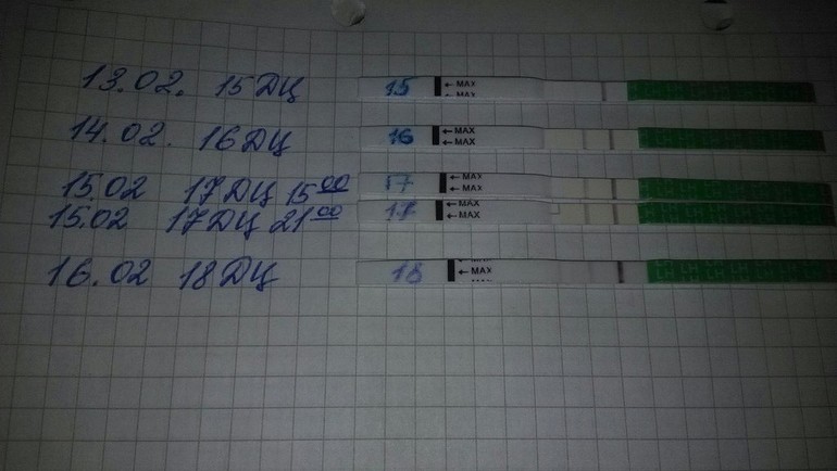 Добрый вечер!Мне кажется,что у вас 17 была овуляция.Мы в этом месяце ее ловили по тестам(с улыбочкой клеа блю)показали О на 14 день цикла!Как я вас понимаю, так хочется на свое д.р.тоже 26 февраля,как у вас))))увидеть //
