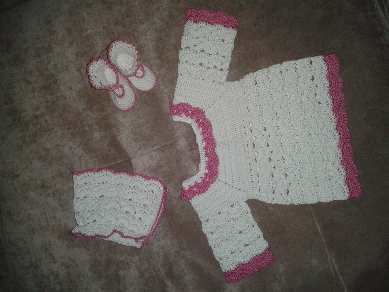 нет. нашла схемки кокеток к платьям, присмотрела узор, по мере вязания устраняла косяки, пинетки пришлось соображать, схему подошвы нашла, а от подошвы тоже методом тыка)) сверху связала один ряд узором как в платье, а мастеркласс чепчика этого в инете есть в огромном количестве) сейчас хочу связать костюмчик нейтральных цветов, вдруг пацан опять))) и не крючком, а спицами наверное, что-нибудь красивое, с косами) покажите свои приманочки, интересно так)
