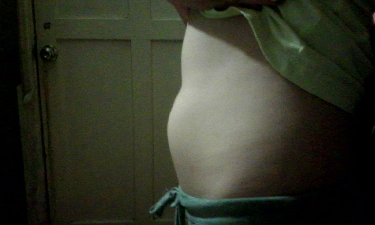 у меня такой живот появился только в 6 месяцев и сразу раздуло, срок маленький чтобы вот так все выперало уже.обычно при б, в районе мочевого, чуть выше лобковой кости только к 3 месяцу образуется небольшой бугорок — шарик.если у вас лишнего жира на животе нет, то рано еще.а если есть жирок, то наверное он и выперает так сейчас у вас