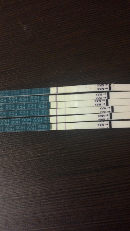 наконец то я увидела полоску, такую яяркую, такую красивую)) завтра еще замочу последний тестик и все, хватит, надеюсь попаду к врачу и там то все и выяснится))