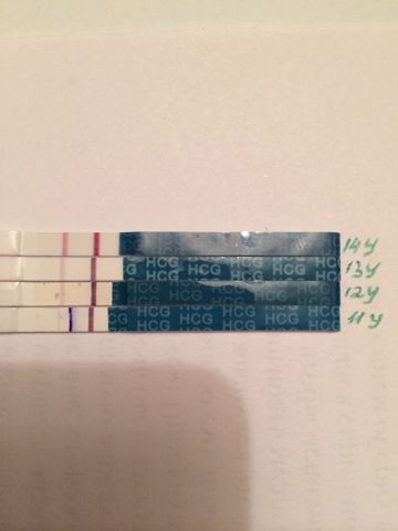 На 11 дпо утром я не стала делать тесты, но руки чесались, хотя я и представить не могла, что после такого количества выпитой жидкости, я практические не копила мочу, тест может явно заполосатится! На wonder test полоска вылезла в тот момент, как стала проявляться вторая, но не такая яркая конечно! Я тут же замочила еви и на нем увидела вторую слабую полоску.
