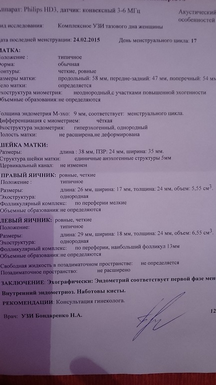 у вас все нормально, не переживайте, ДФ определился, дай бог О придет ))) по поводу эндометриоза- по узи никак его не определить, признаки — это да, но диагноз никак нельзя поставить. Э кстати у вас хороший, и возможна Б, верьте в это ! у меня нашли эндометриоз на лапаре случайно, ни один узист никогда за 4 года обследования даже признаки эндометриоза не видел.