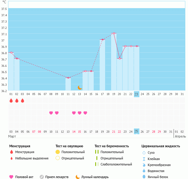 Базальная температура, ТТ, графики БТСегодня 23 день цикла из 26. Овуляцию не отслеживала.