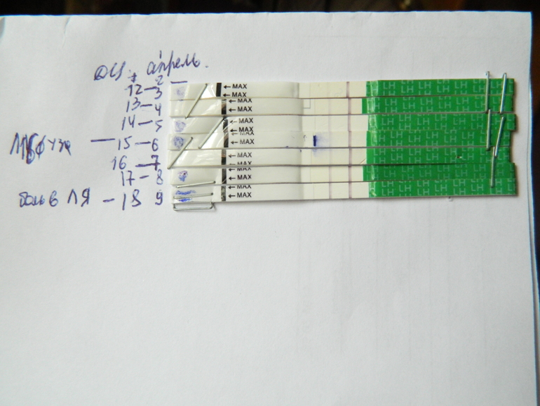 На 19 тест такой же,как и на 18,а потом резко светлые тесты.Сегодня 22ДЦ.эндометрий 14мм,киста жёлтого тела на месте,где была О,жидкость в малом кол-ве.Девочки после фемостона наконец-то заработал ЛЯ.Он вообще никогда не овулировал.ПА был три дня(17,18,19)В О попали.Сейчас ждём,ждём.Начинаю поддержку дюфастона.Узист уже дала направление на ХГЧ на 2-3 день задержки,чтоб дюф.не отменять.