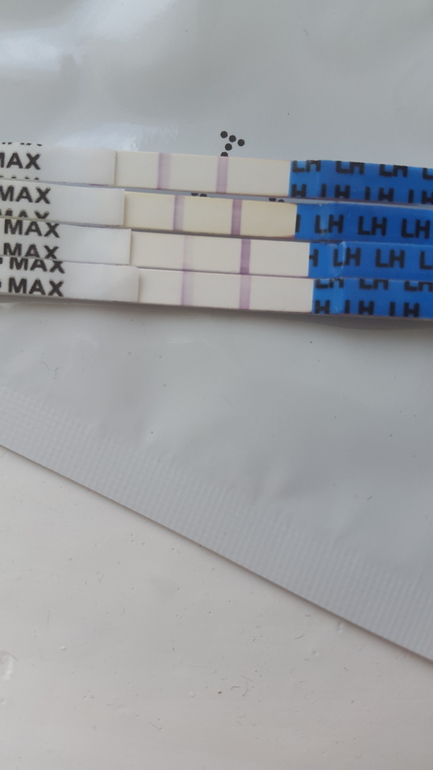 Овуляция( тесты на овуляцию) вот тесты..верхние 2 вчера утром и днем, третий вчера вечером(уже отрицательный)нижний сегодняшний