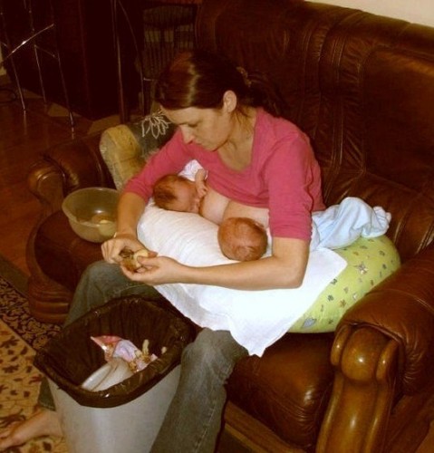 Фото конечно антисанитарное. Но ни чего страшного нет. Оно просто открывает суть. Ну вот как ей еще готовить??? А если дети не спокойные, а бывают такие что спят только у титьки, а тут их еще и двое. У женщины тупо нет вариантов.