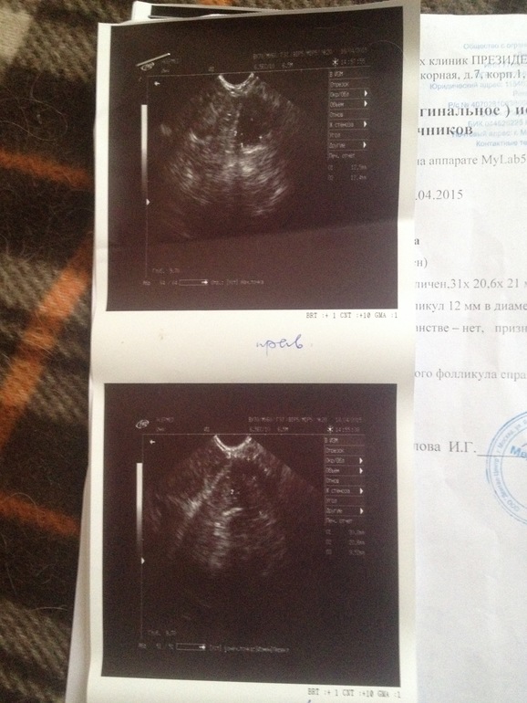 В итоге переделала УЗИ, 20 дц. О была, все в порядке! ЖТ 15 мм, эндометрий 13 мм)))) УЗИстка показала ЖТ на экране, как раз на том месте где предыдущая увидела Фоликул 12) ура)