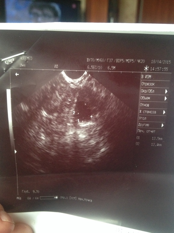 первое от 15.04, 13 дц. доминантный фолликул 17,7, эндометрий 7,7. сказала, что О ближе к выходным. Тест на О 16,04 яркая полоска, 17,04 слабая. вчера (17,04) стреляющие боли в Я ( у меня он один, только правый). Сегодня пошла на УЗИ( второе фото). Это ппц......Житкость она не увидела, увидела, фолликулы 6 и 9 мм, после того как я сказала, что был 17, она нашла фолликул 12 мм. Сказала, что наверно он уменьшился и О не было. Кроме того сказала, что у меня двурогая матка)))))))))))) А после моих слов, что это не так( я рожавшая и пережившая полосную операцию) она заявила, что видит это и лучше знает. жидкости тоже не видит( плиз..... посмотрите пожалуйста фото) потому что я на втором( сегодняшнем) снимке вижу ЖТ!!! Или я дура уже просто сходящая с ума! Еще нашла спаечный процесс, которого никто раньше не видел ( за последние 3 месяца сделала 6 УЗИ) Кстати, в заключении ни про матку, ни про эндометрий не написано. Это УЗИстка некомпетентная или я уже умом тронулась!
