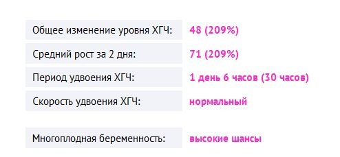 Мне так же показывал. В один день был 47, через два дня 142. Показывал, мол высокий шанс двойни. А сейчас ХГЧ растет нормально, не так быстро. :)