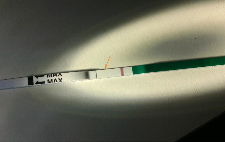 Еще есть способ)))) тест положить на чистый лист бумаги а снизу через бумажку его просветить фонарем))))) и если есть хоть слабая вторая ее хорошо будет видно))