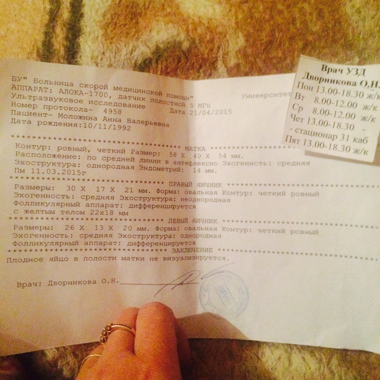 Матка увеличена,жт и эндик отличные. У вас маточная беременность!